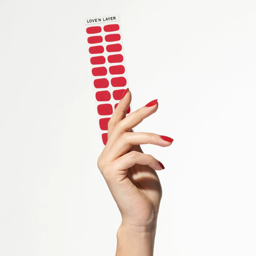 Layers is an innovative, pre-set and pre-cut adhesive gel nail polish. Following nail preparation, it takes 3-5 minutes to apply, without mess and unnecessary drying time. Its thin, yet strong, layer supports and protects your existing nail while adding colour and pattern into your life!