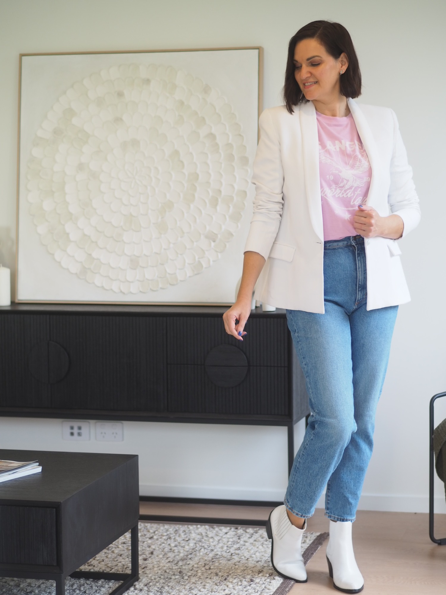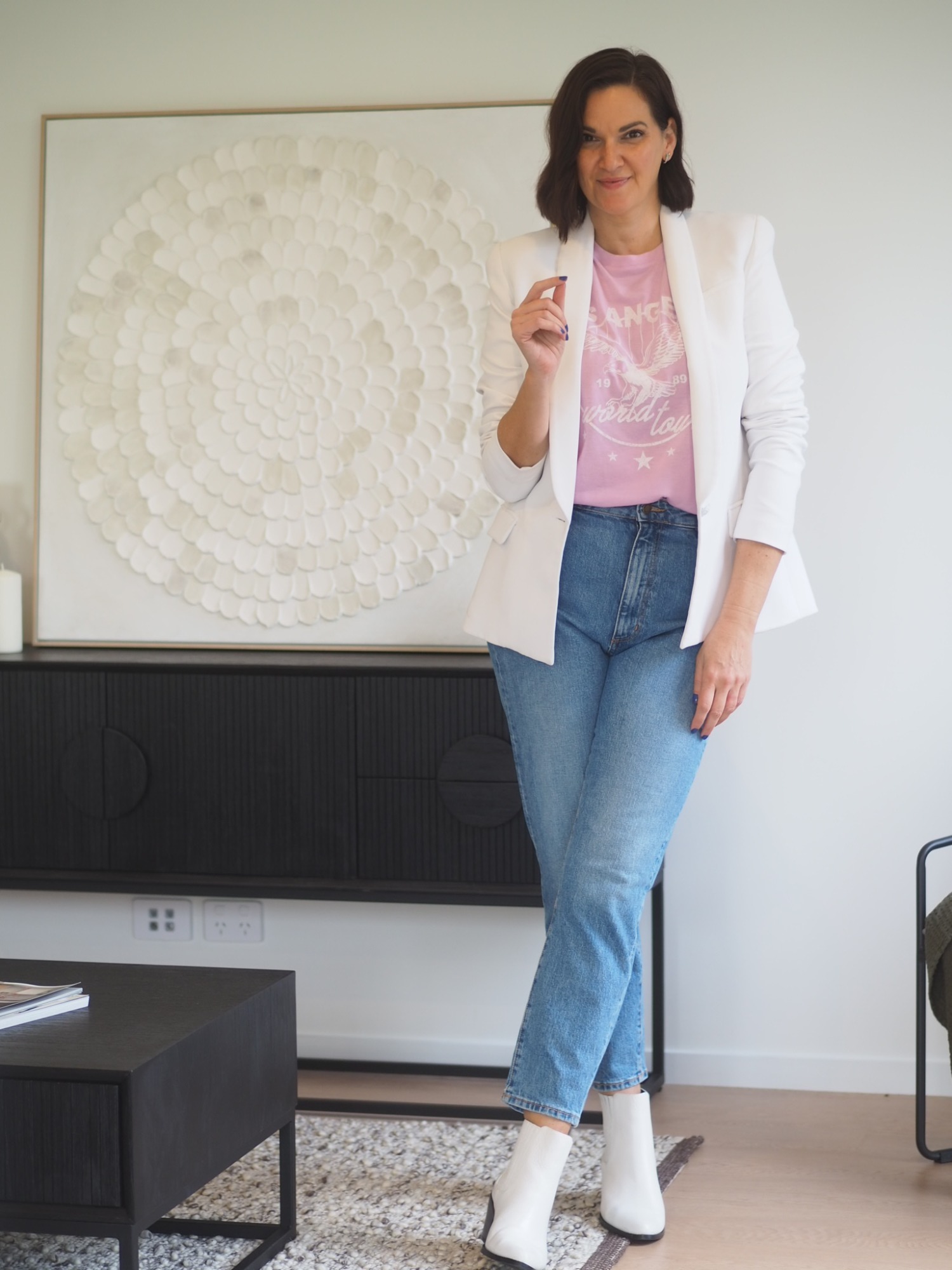- Smart Casual Mastery: This dress code can be tricky, but it’s all about finding the sweet spot between polished and relaxed. Think tailored pieces (like a blazer or chinos) mixed with more casual elements (like a t-shirt or sneakers). The key is to choose high-quality fabrics and well-fitting items. My general rule is to take TWO smart pieces + TWO casual pieces and wear them together, like so…
