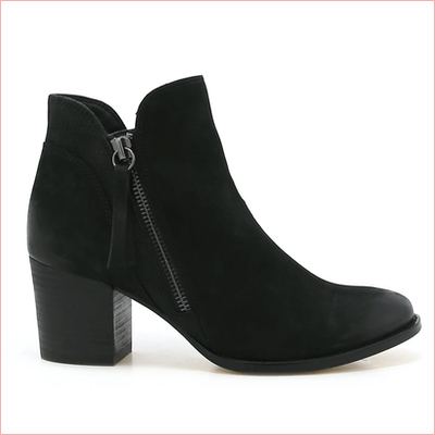 Go with a classic black leather boot with a small, wearable heel. They will literally go with EVERYTHING. They’ll look great with jeans, but you could also style them up with black tights and a dress. The heel height means they are comfortable enough for all day, but dressy enough for nighttime if need be.