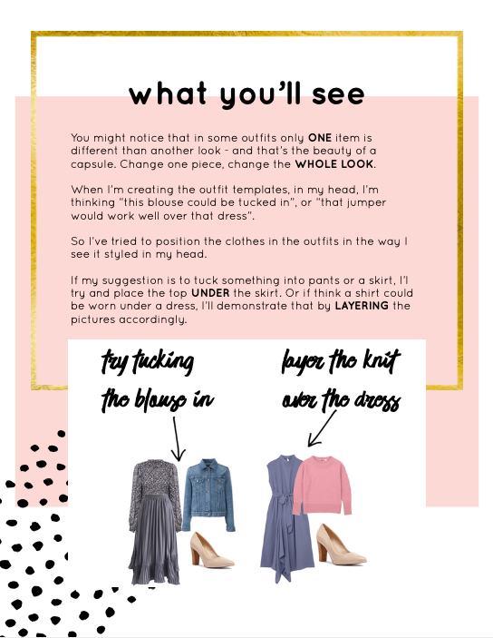 So I combined these two ideas, having pieces that work back with each other (hello capsule wardrobe!), but also giving you the room to inject your own sense of style into that capsule.